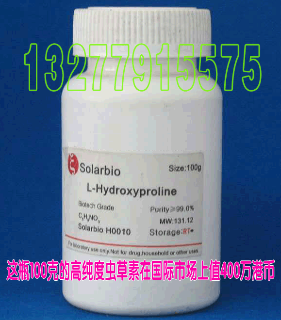 特别说明:高纯度的虫草素在国际市场上已卖到4万港币/克。野生冬虫夏草中